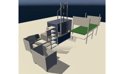 Machine operation zone – conveyor belt for part-handling, machine for hot-plate welding, machine for tightness testing, quality control points, and packing of the product. All machines, tools, and equipment are modeled with a high degree of realism, closely reflecting all physical counterparts. The prototype and the final version also include interactive and movable elements – such as functional buttons, welding tool mechanisms, and rotating parts to simulate real machine behavior and usage.